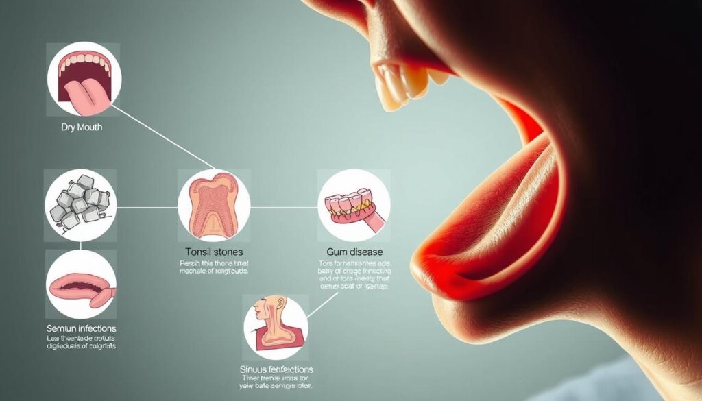 Ada beberapa penyebab umum dari bau mulut, antara lain: